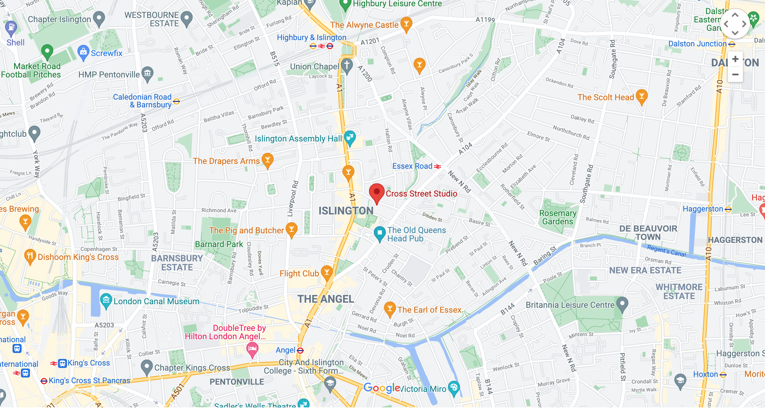 We’re located in one of Islington’s best known side streets, off Upper Street, surrounded in all directions by cafés, bars, restaurants, cool shops and period buildings.